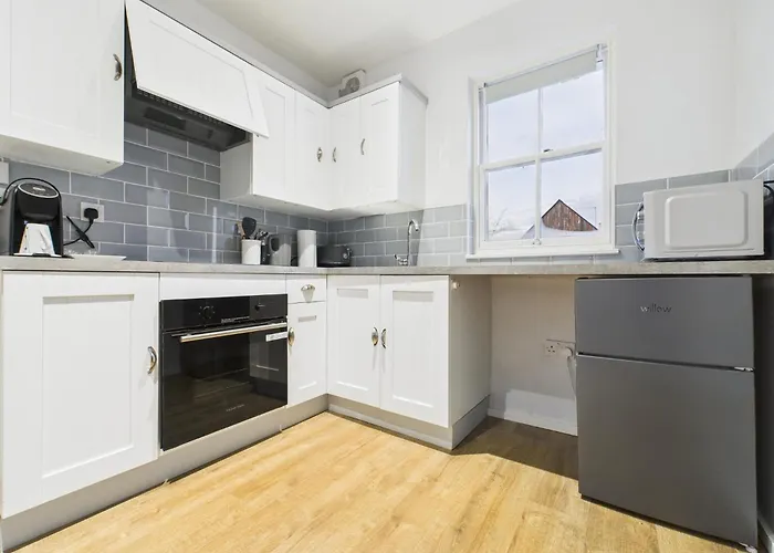 Los huéspedes pueden preparar comidas caseras en una cocina completa. El Stylish 1-Bedroom Apartment - Barton Heights, Central Tewkesbury está a una distancia de 250 metros de la parada de autobús más cercana, Oldfield.